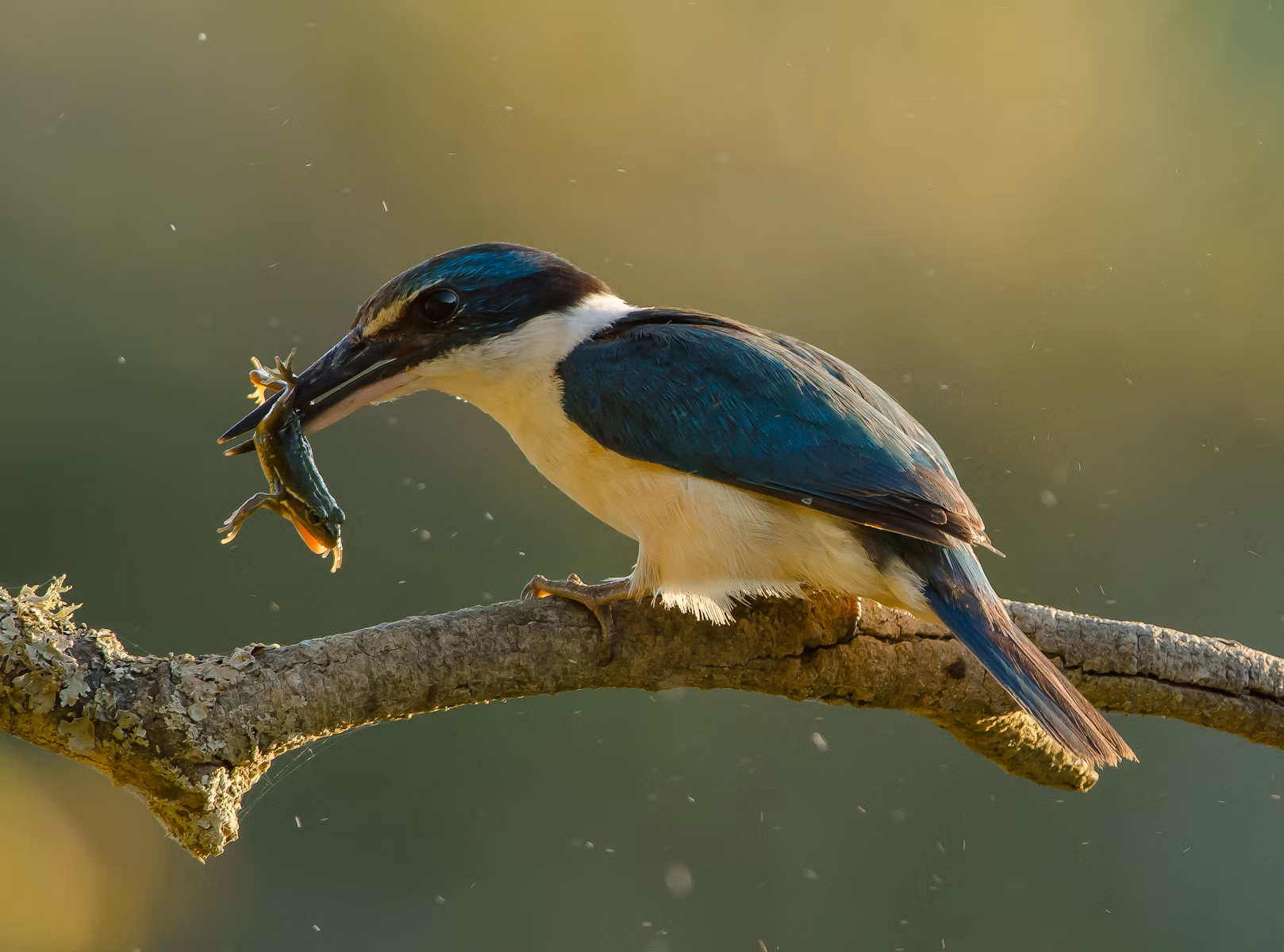Kōtare hunt both aquatic and terrestrial prey, including insects, spiders, freshwater crayfish, crabs, fish, tadpoles, lizards, mice and even small birds. In winter, inland kōtare may move towards the coast in search of more abundant food.