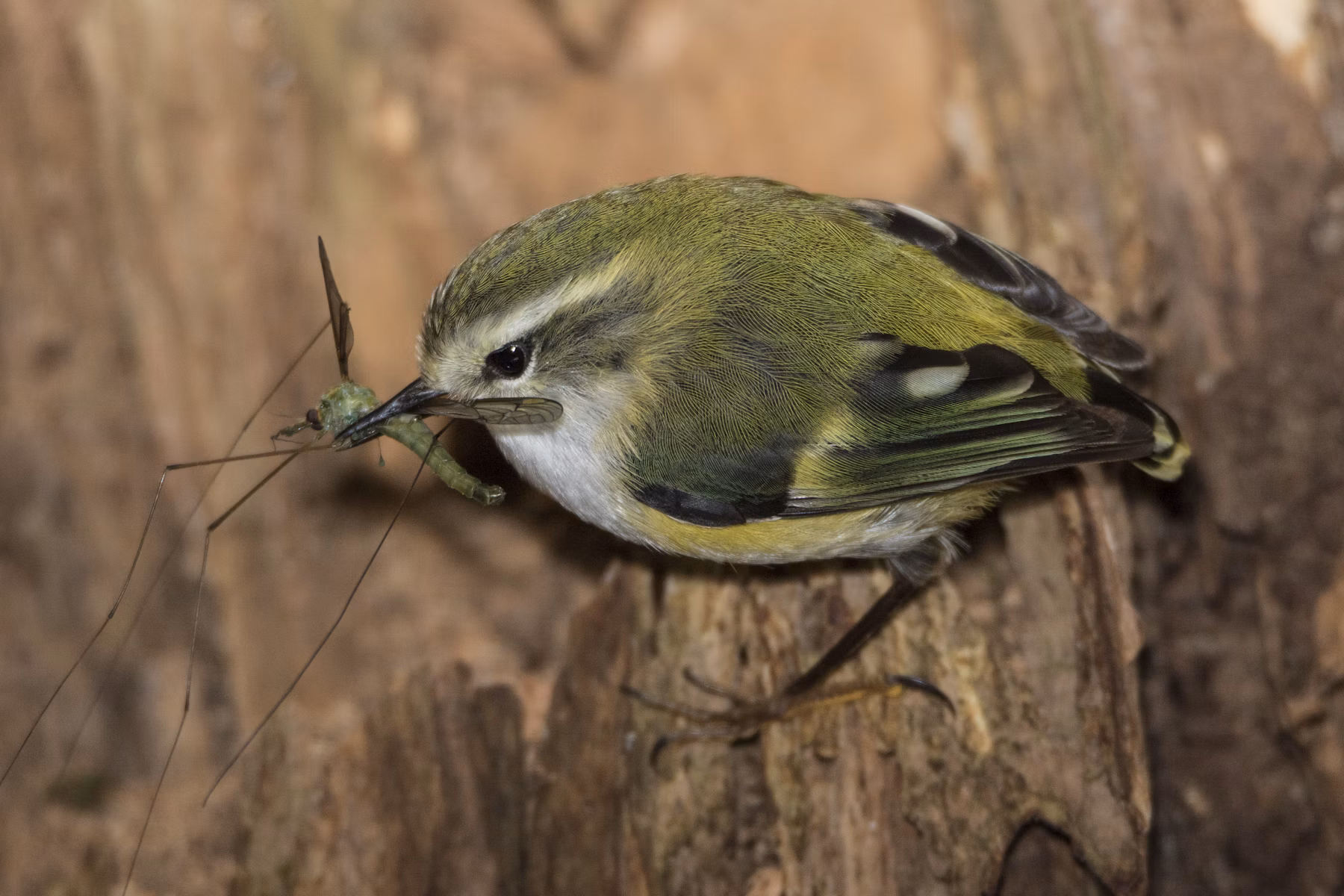 Riflemen are almost exclusively insectivorous, feeding on a large variety of small invertebrates, particularly beetles, flies, spiders, and moth species (both adults and caterpillars). They occasionally consume small fruit and the contents of beech seeds.
